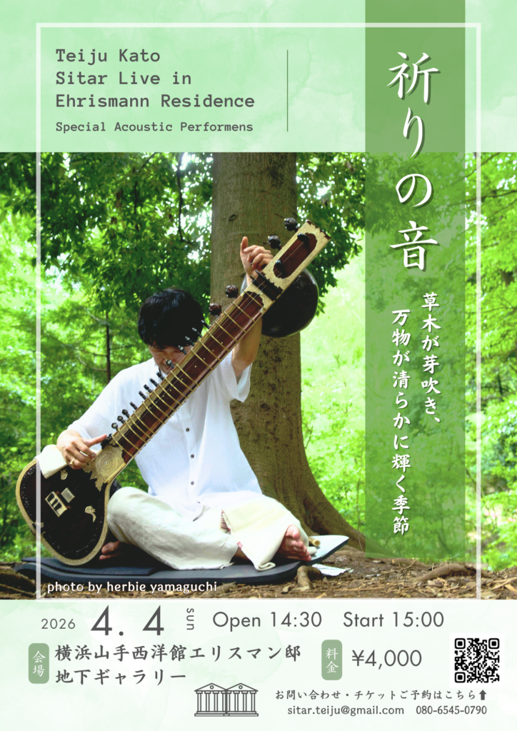 【祈りの音 春のシタールコンサートご案内】 草木が芽吹き、 万物が清らかに輝く季節🌿 昨年秋のコンサート以来、季節ごとの定例開催となりつつある、横浜山手西洋館エ… -